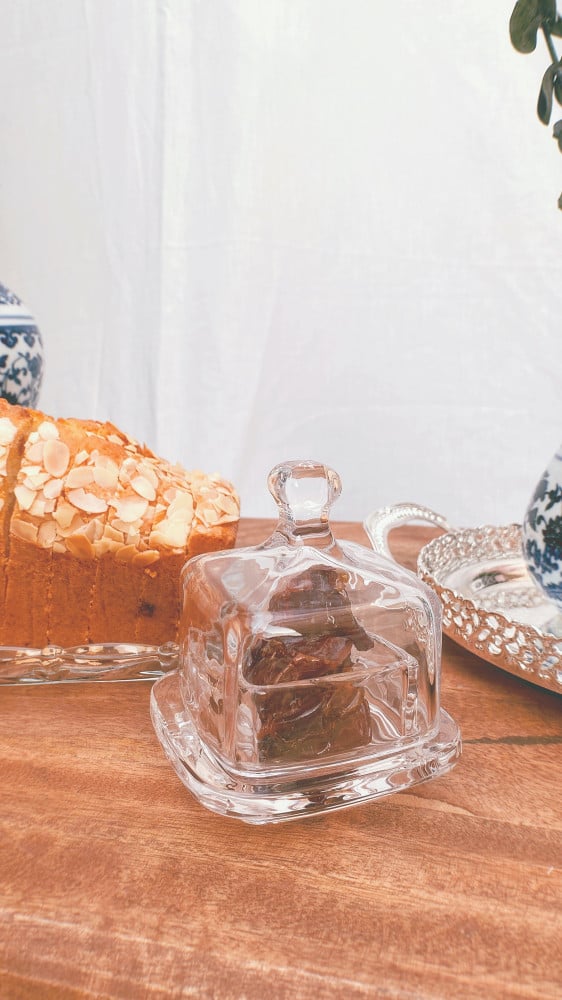 صحن زجاجي مربع صغير مع غطاء