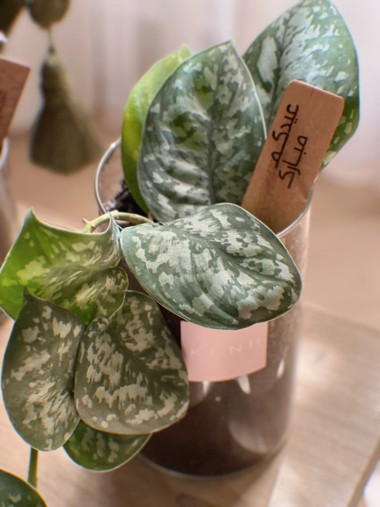 - ٣ نبتات سكندابسس فضي منسقة في اصيص زجاجي صندوق حامل .