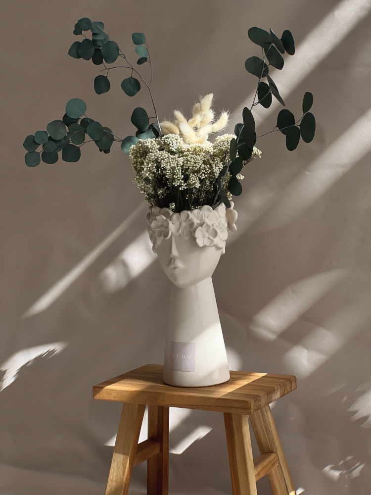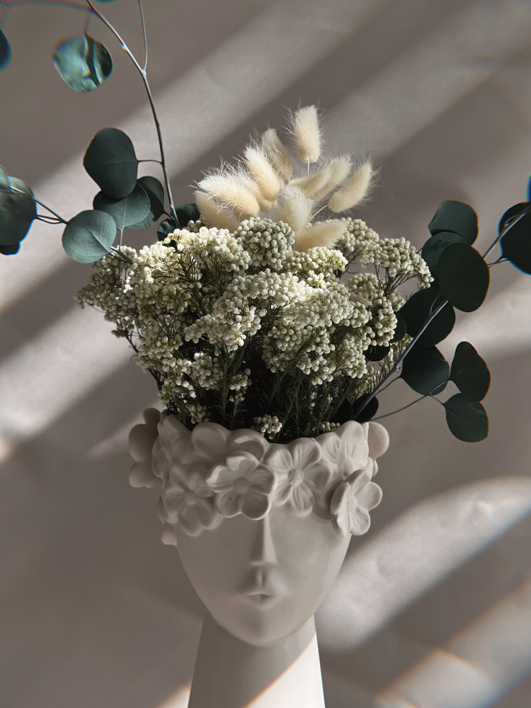 فازة من الزهور الطبيعية المجففة لتدوم لك دائما بشكلها الزاهي المنسق بدون ان تحتاج الى عناية .
