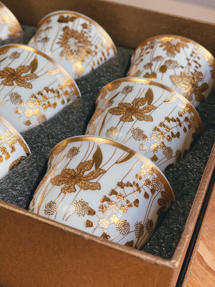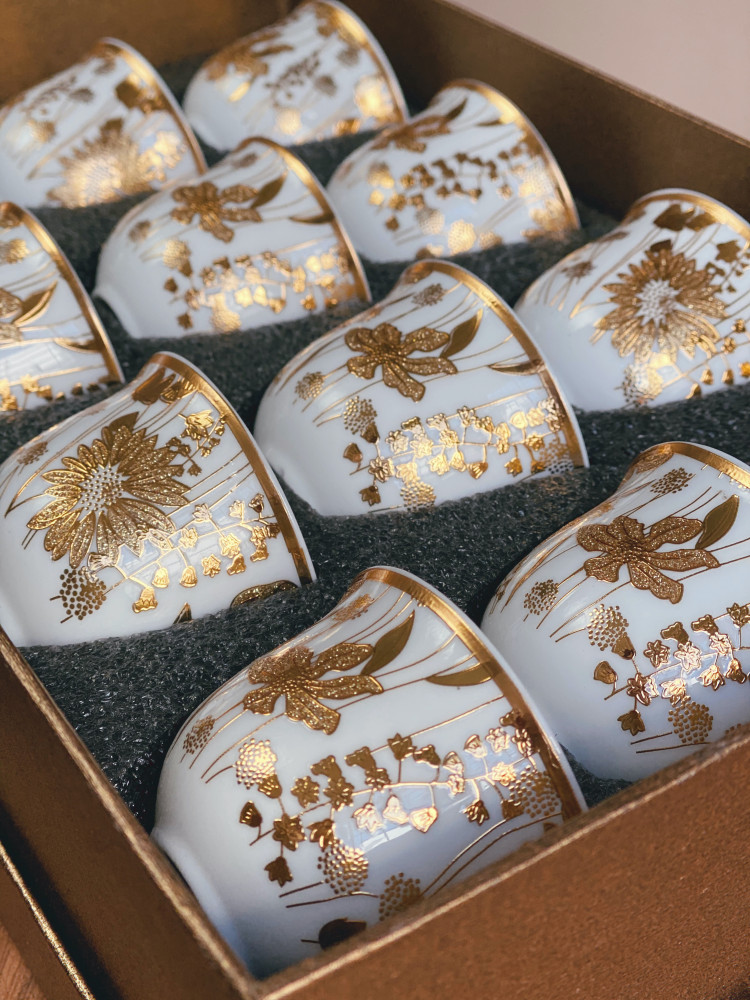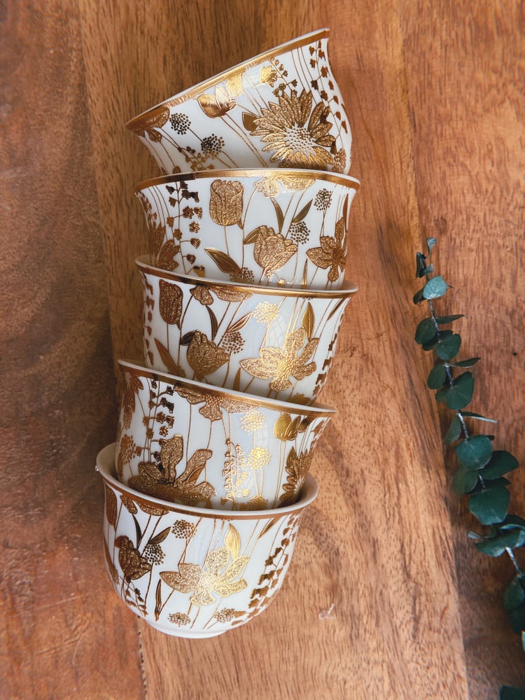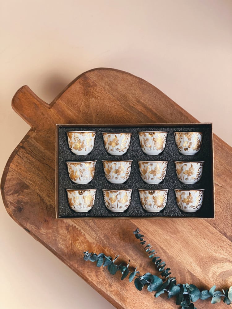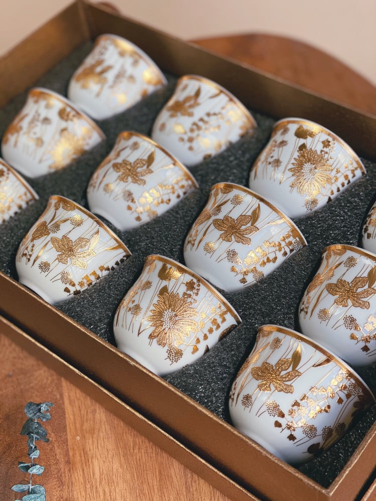 مجموعة فنجان قهوة زهرة ذهبية - 12 قطعة