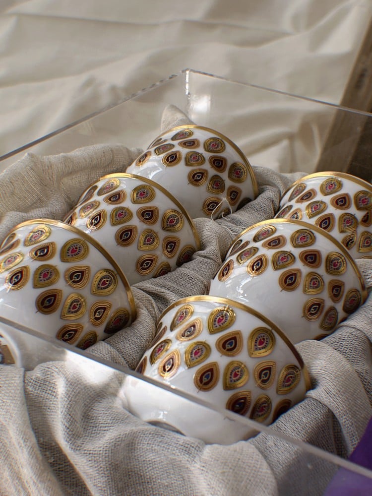 - طقم 6 قطع فنجان قهوة بنقوش ملونة .