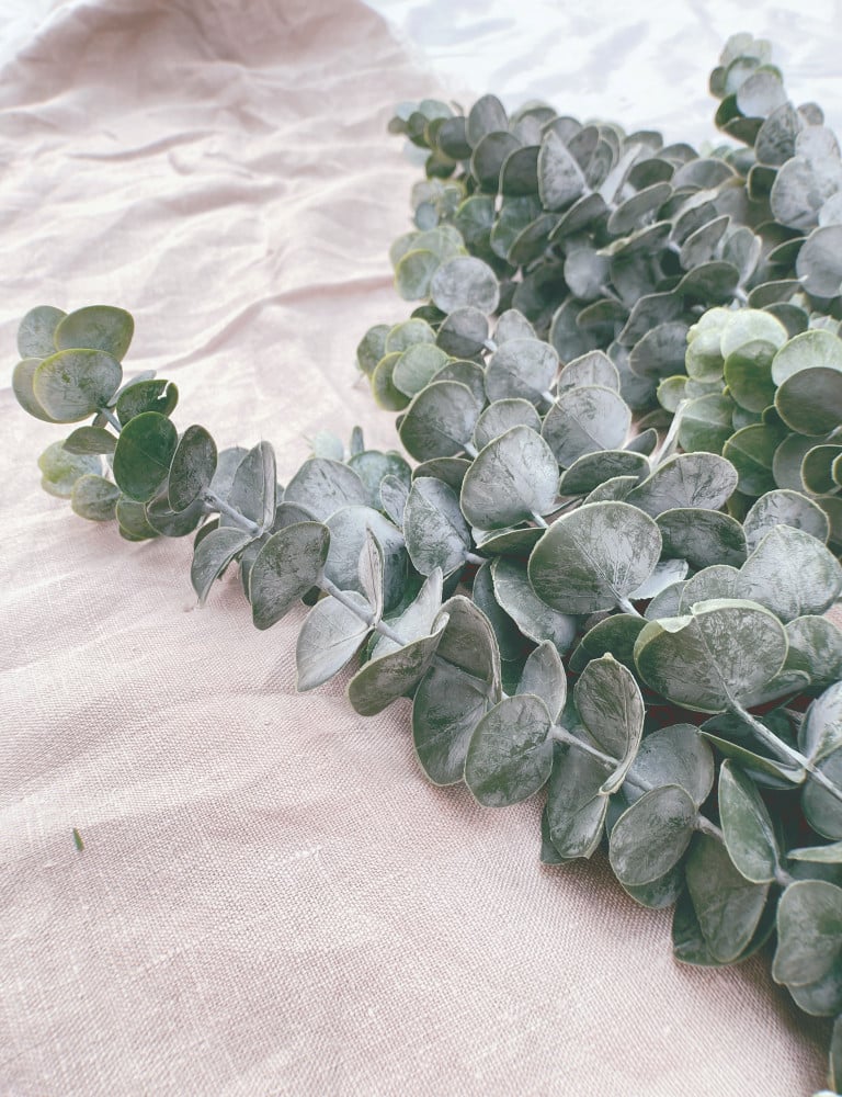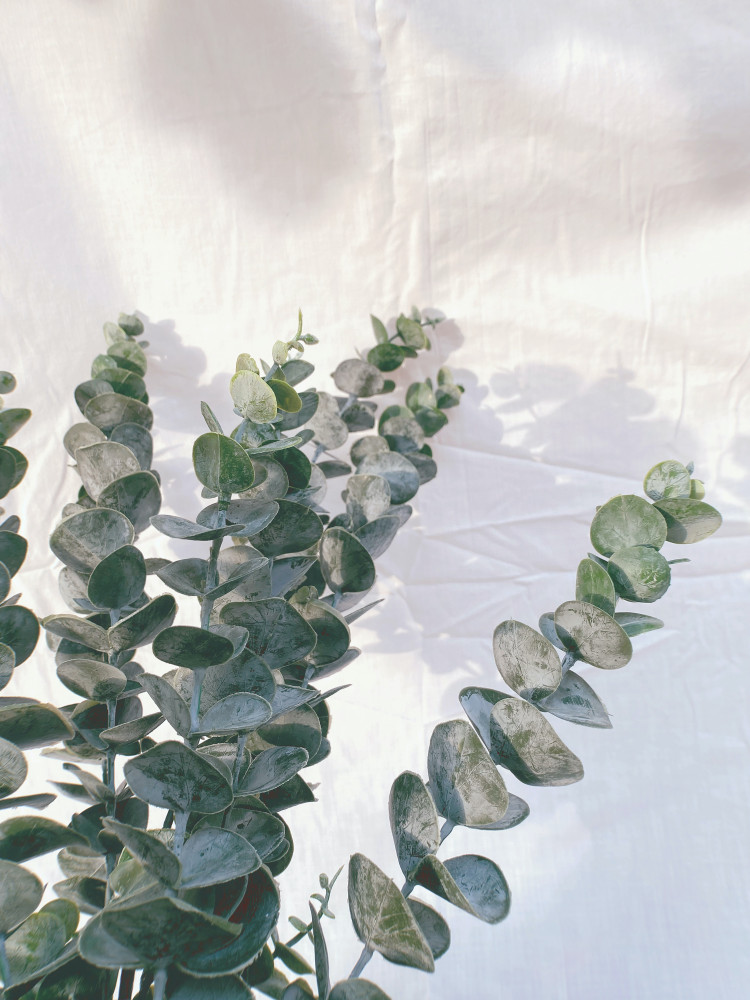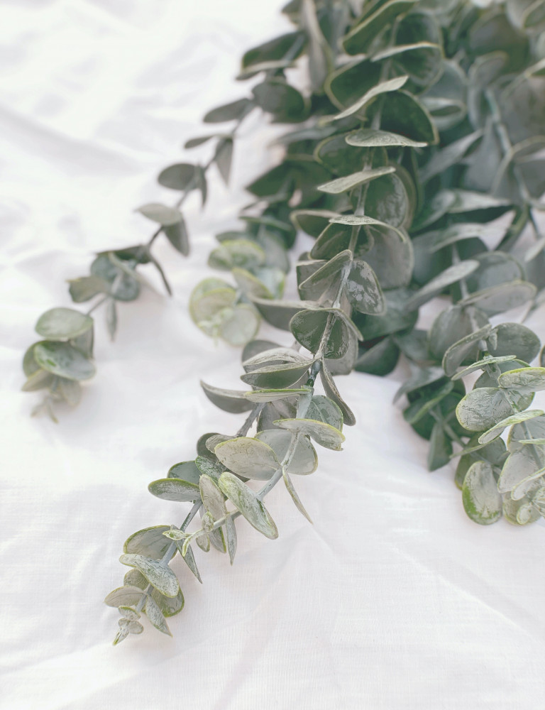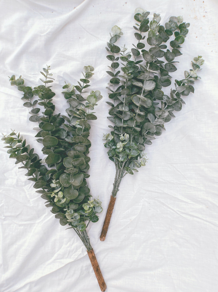 مجموعة من اغصان اليوكالبتس الصناعي بجودة عالية في قبضة واحدة .